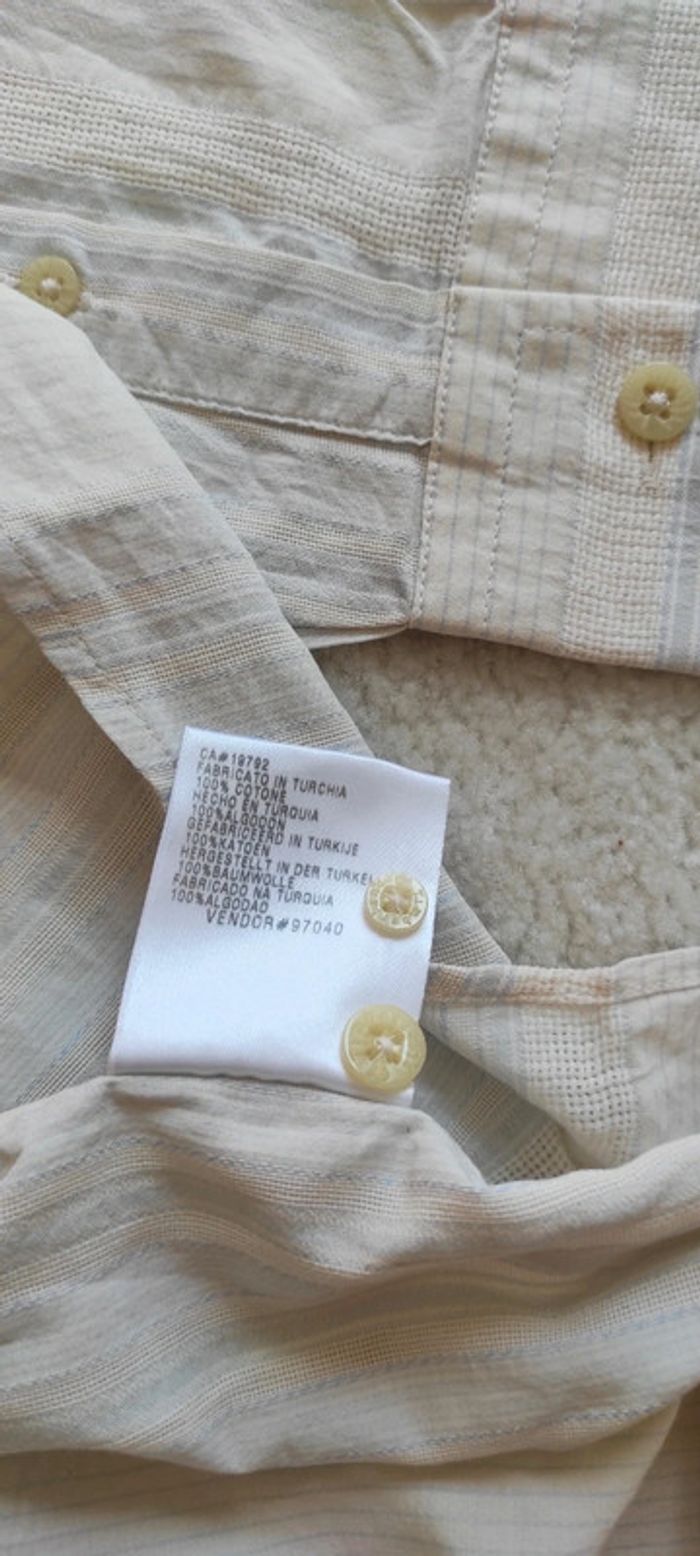 Chemise manches longues Timberland S fines rayures blanc bleu pastel 100% coton légère printemps été - photo numéro 5