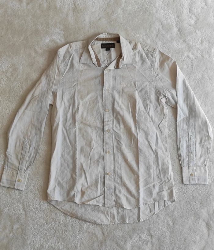 Chemise manches longues Timberland S fines rayures blanc bleu pastel 100% coton légère printemps été - photo numéro 1