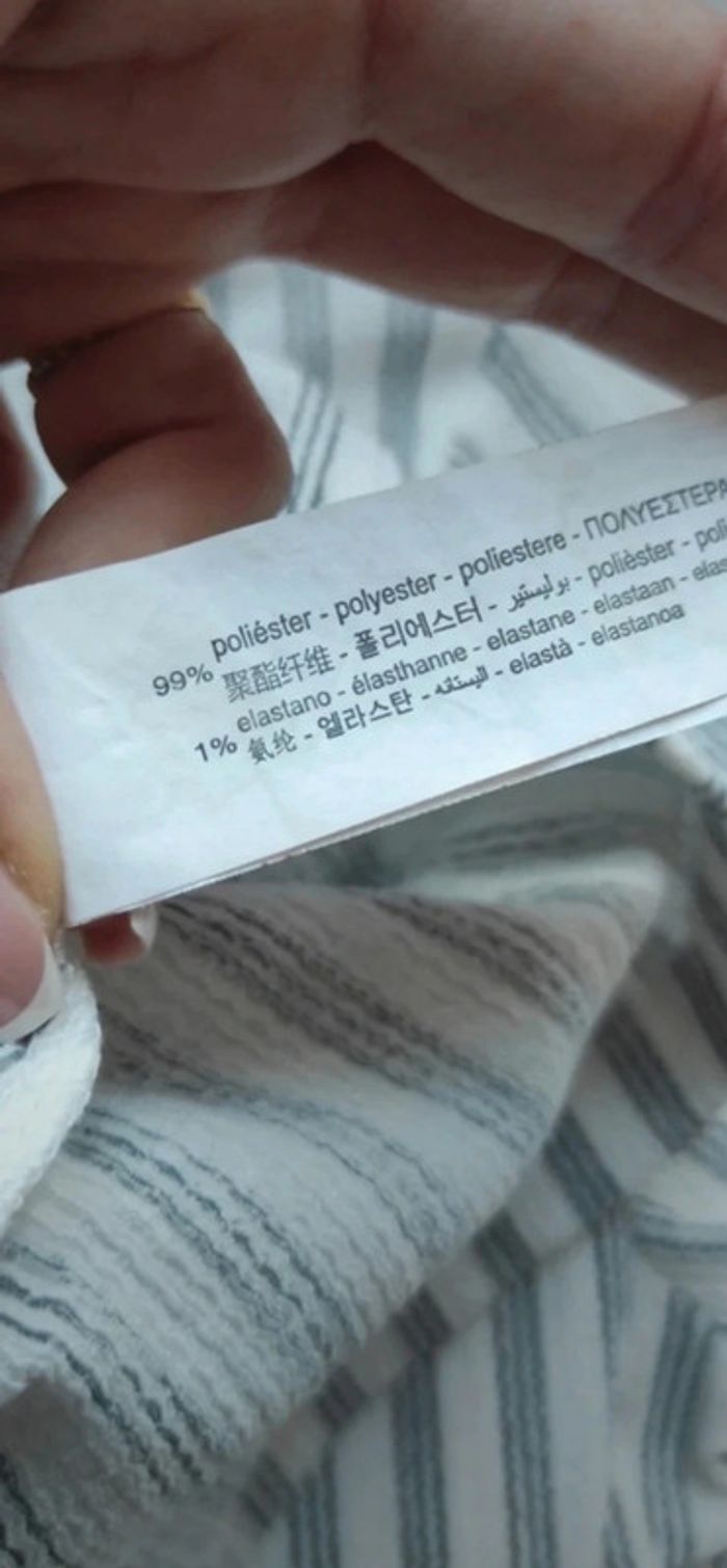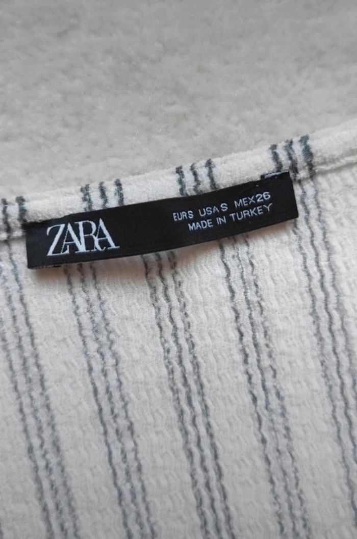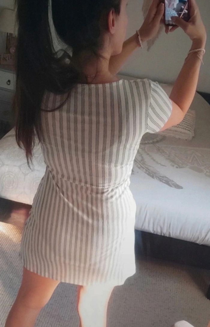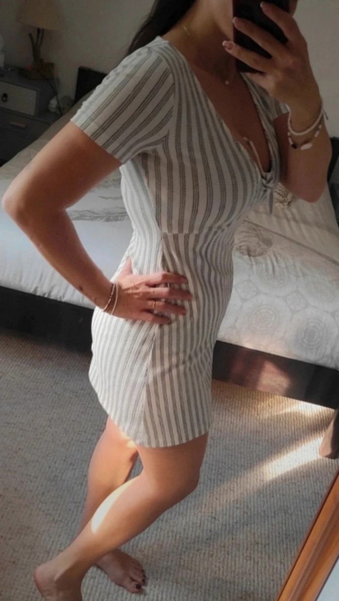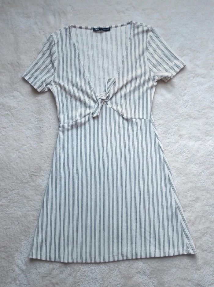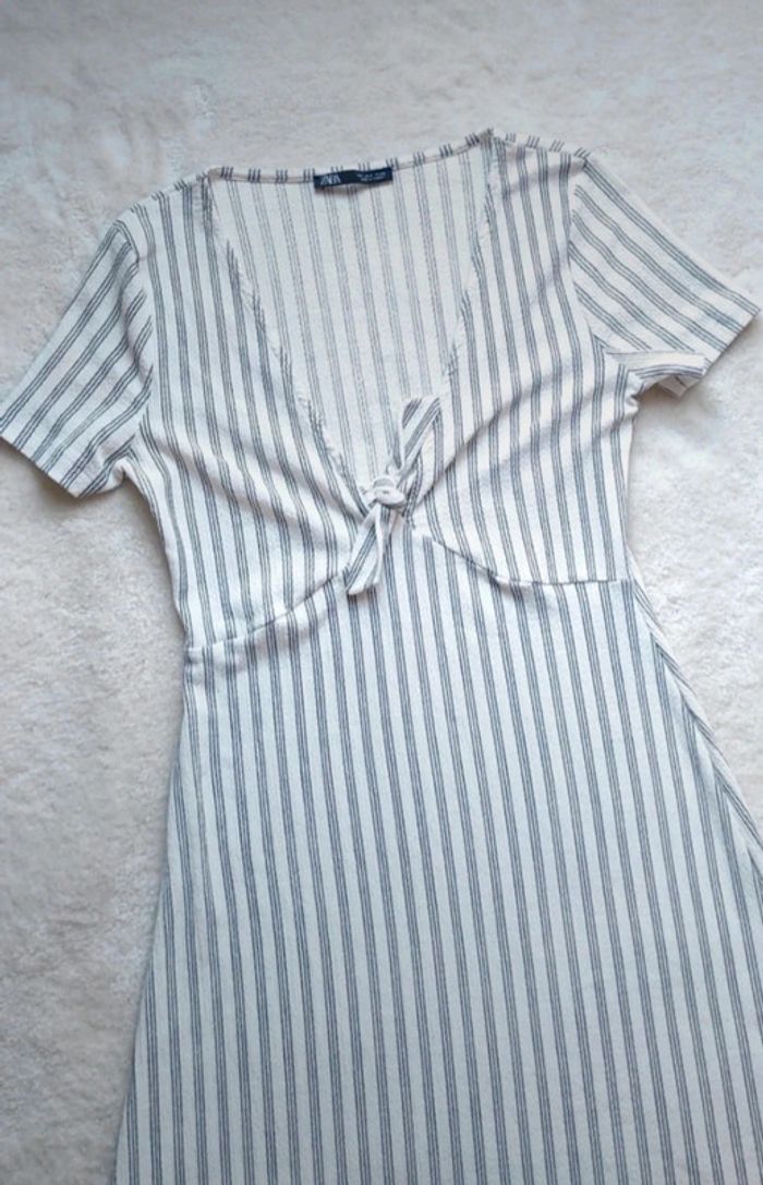 Robe d'été Zara S blanc et gris babydoll petites rayures noeud au décolleté