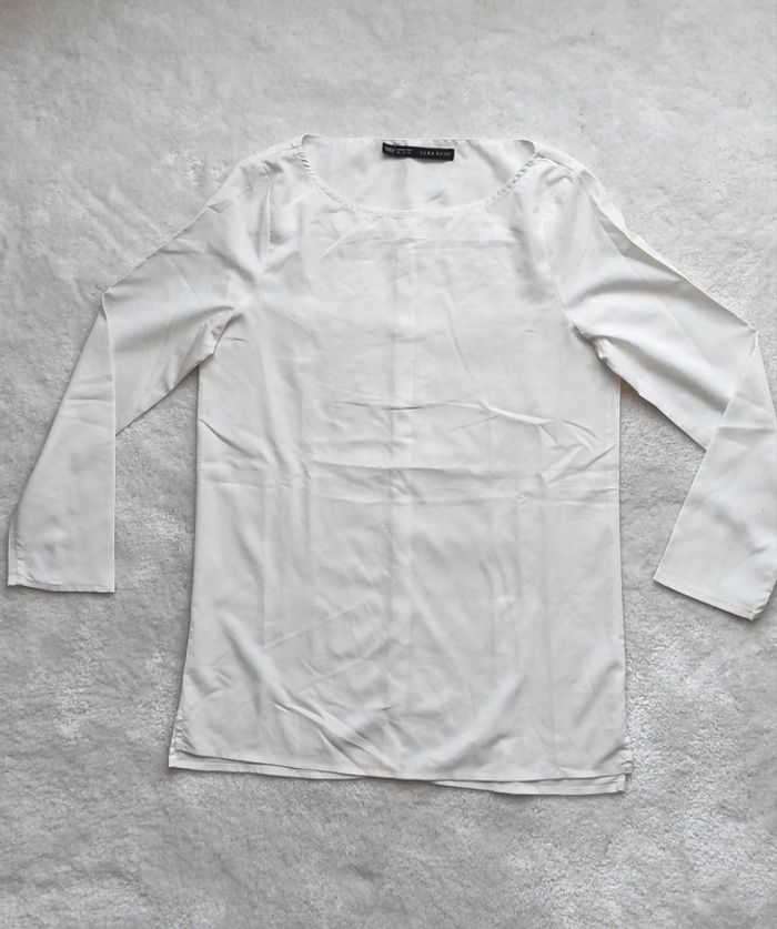 Blouse top chemisier transparent blanc crème Zara XS boutons dans le dos - photo numéro 1