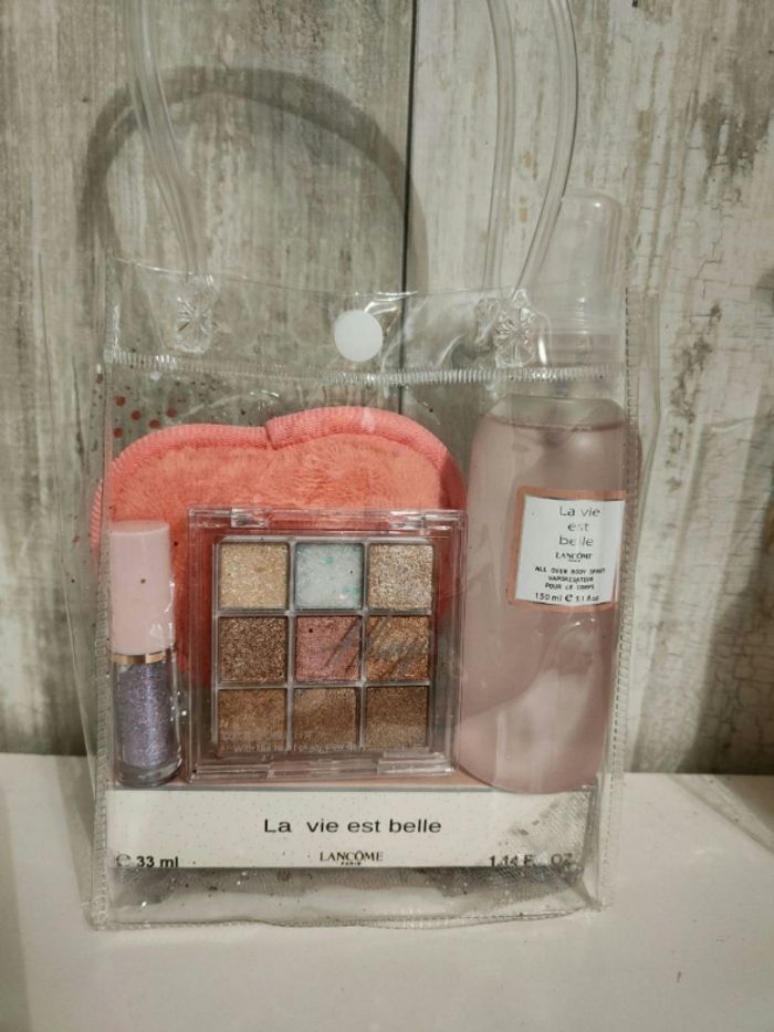 Coffret comprenant 1 parfum 1 brume corporelle 1 fard a paupières 1 coeur démaquillant