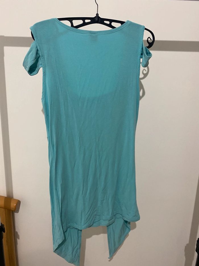 Haut tunique couleur bleue Tee shirt taille 34-36 sur l’étiquette, mais portée en M egalement car extensible Largeur environ 37cm Longueur 69 cm #femmexav