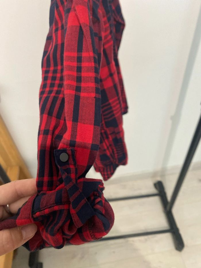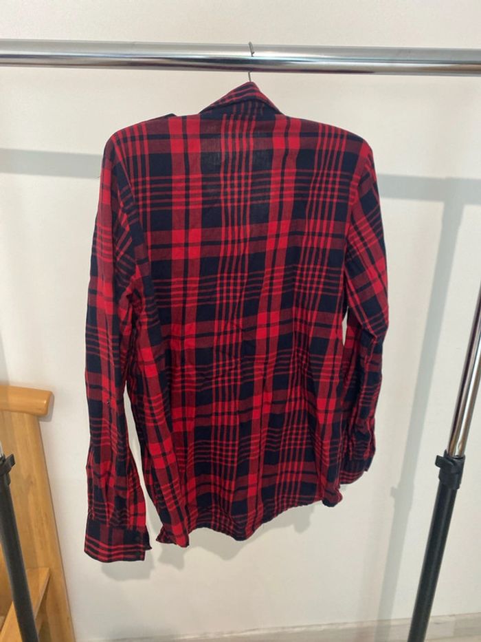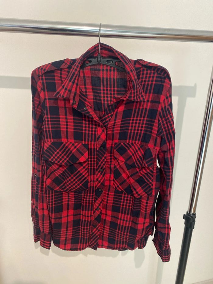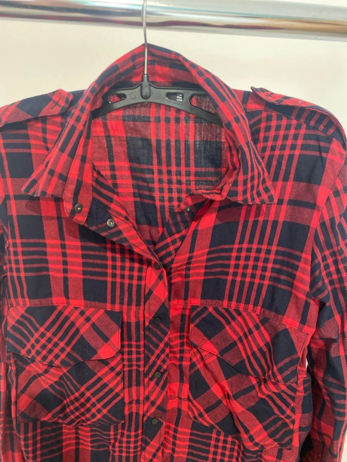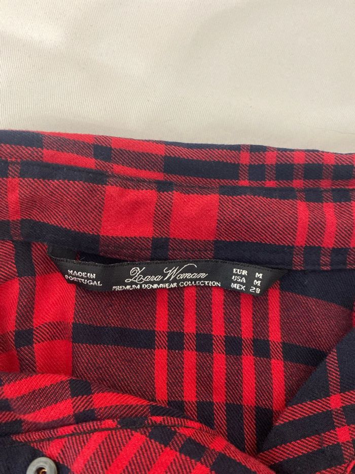 Chemise manches longues à carreaux rouge et noir de la marque Zara, étiquette taille M Largeur au niveau des épaules, environ 38 cm, longueur de la chemise environ 67 cm Fermeture par bouton de pression Manches rétractable en manches trois quarts #femmexav