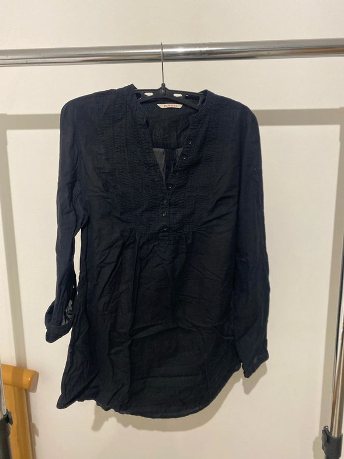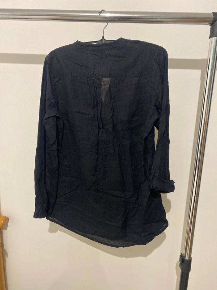 Haut noir tunique ample Blouse manches longues noir, avec manches rétractable, trois quarts ou dépliable manches longues taille M Largeur épaule, 38 cm Longueur 74 cm environ #femmexav