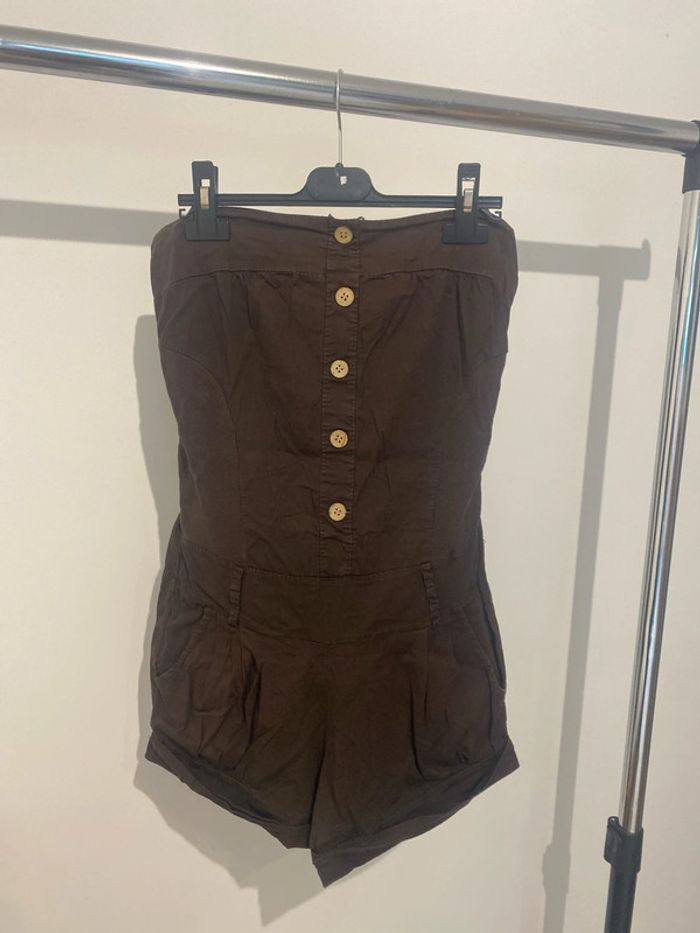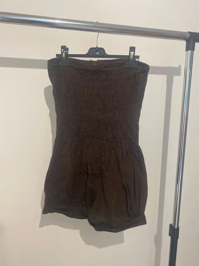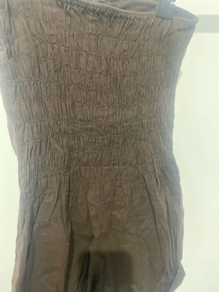 Combinaison short bustier couleur marron largeur au niveau de la ceinture environ 38 cm, largeur en haut du bustier, 38 cm longueur de la Combi short dans le dos environ 59Cm #femmexav