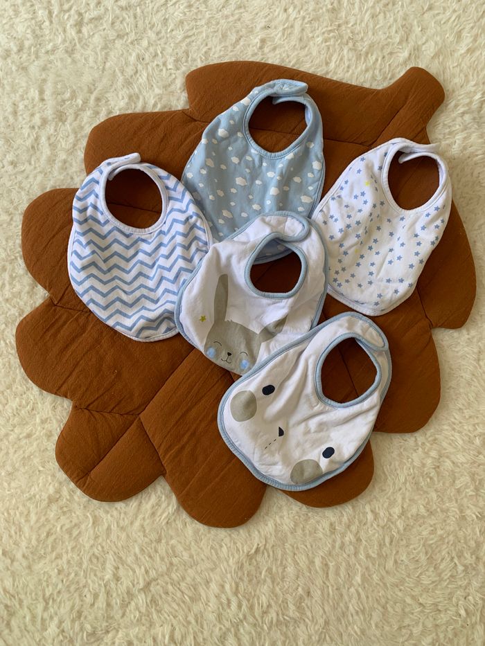 Lot de 5 bavoirs bleu et blanc