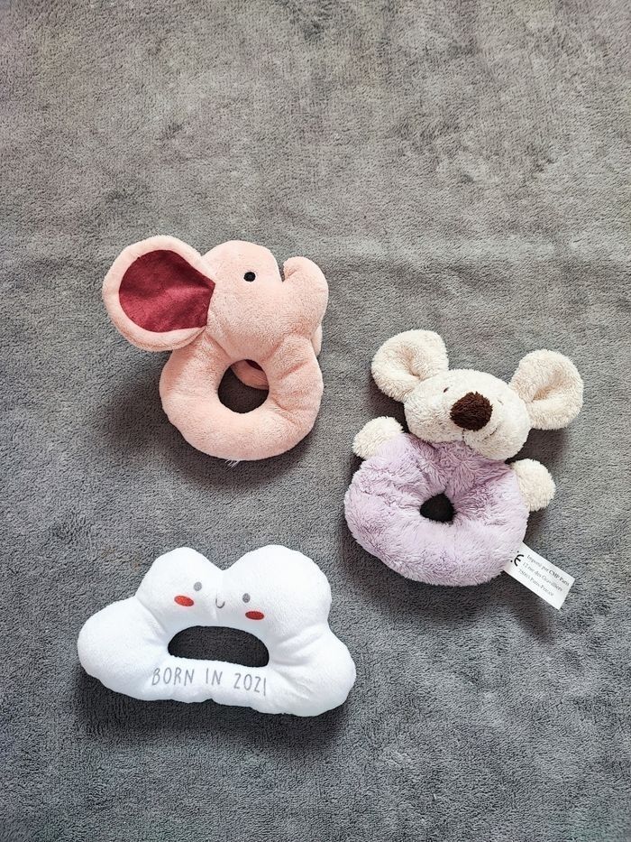 3 hochets en tissu " nuage, souris et éléphant" Neuf , jamais servi