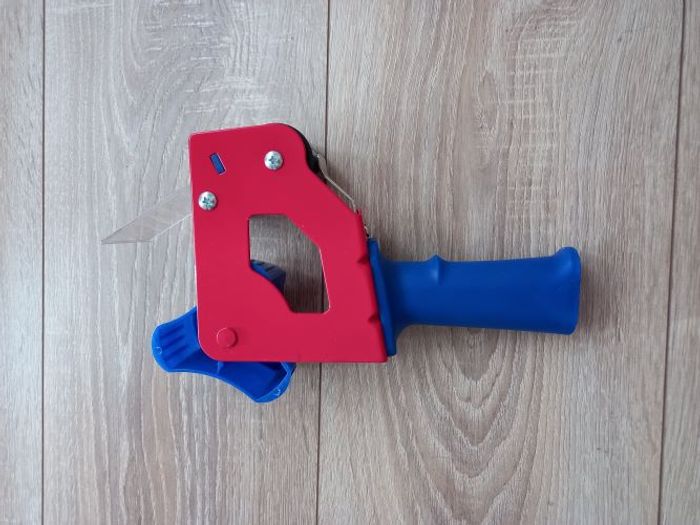 DEVIDOIR DE RUBAN ADHESIF ROUGE ET BLEU EN TRES BON ETAT // METAL