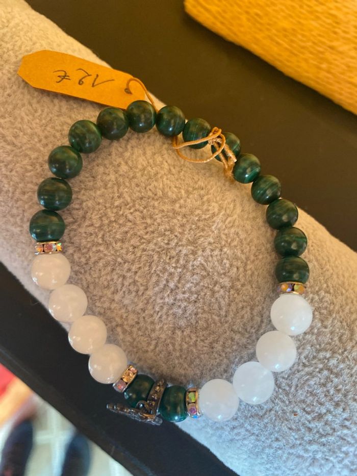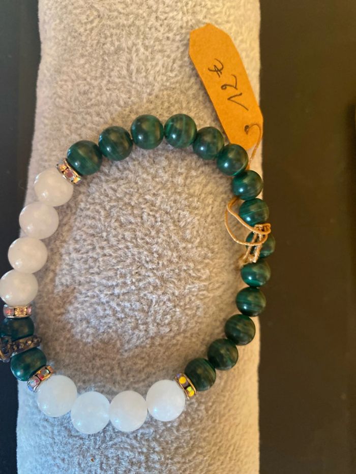 Bracelet en malachite et jade breloque trèfle - photo numéro 1