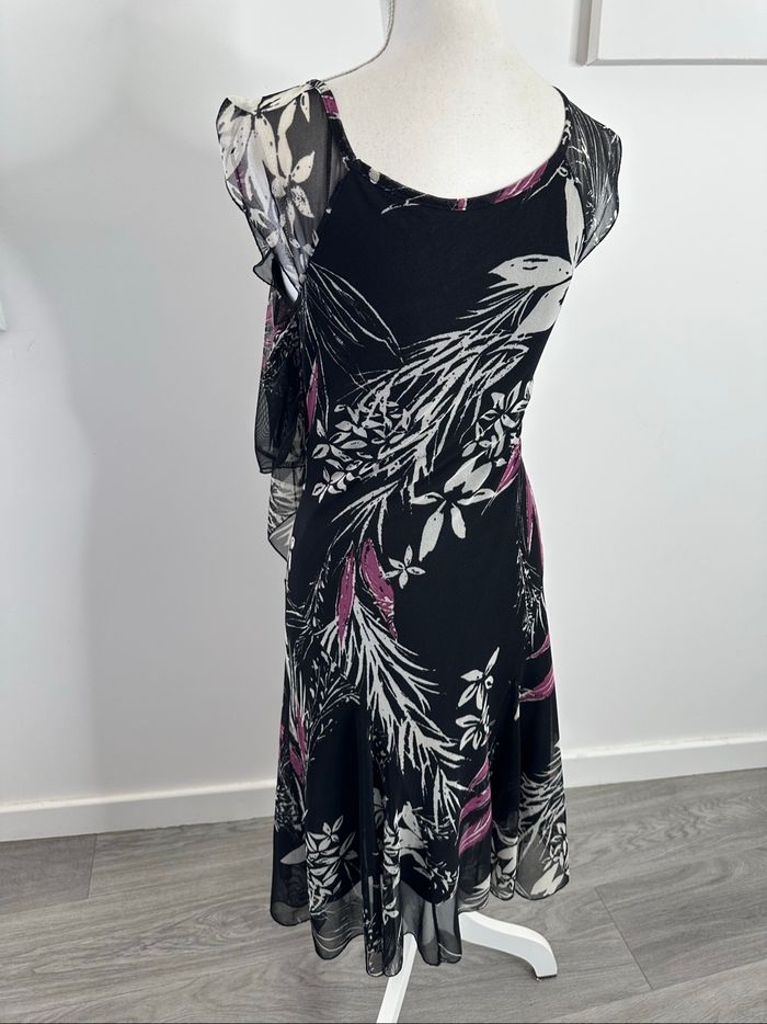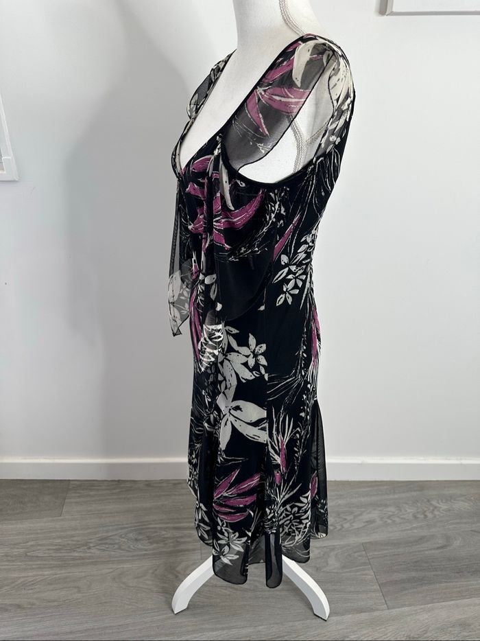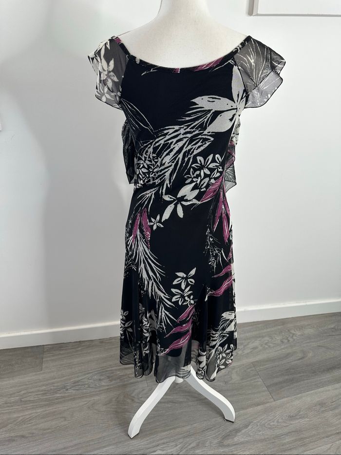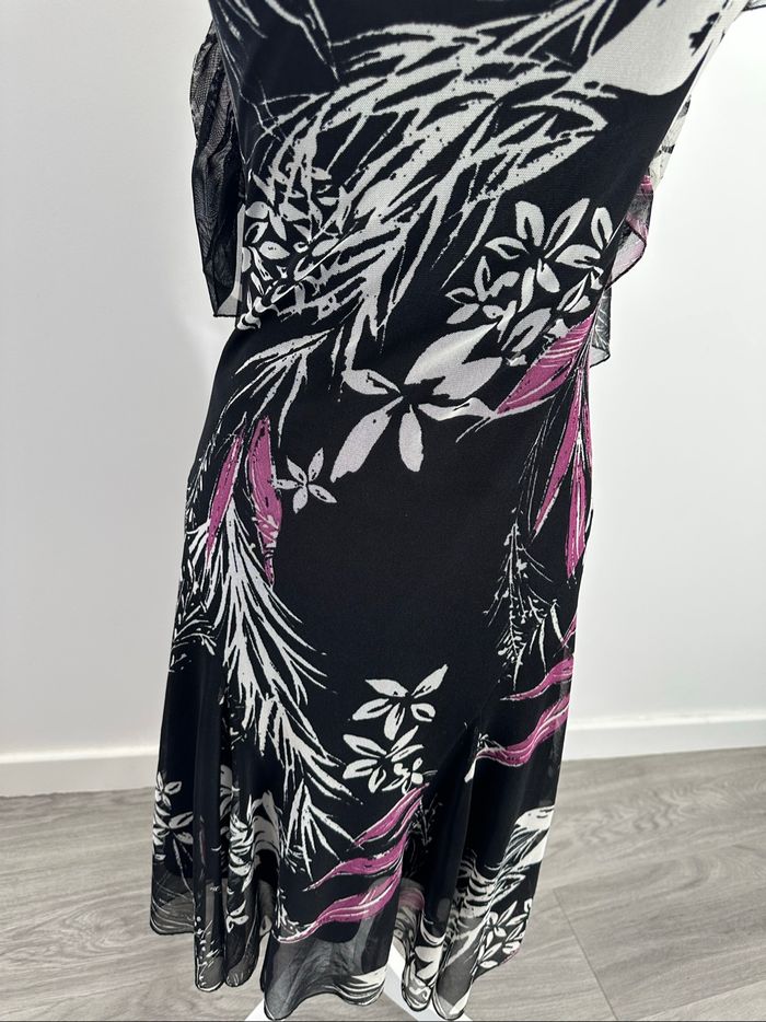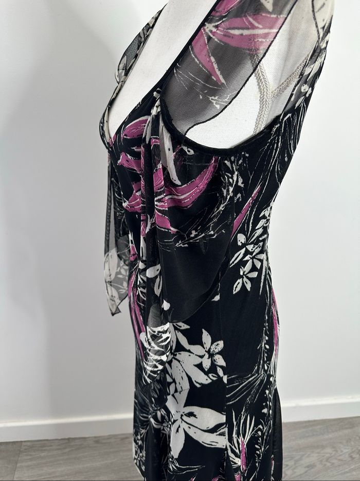 Robe à fleurs en mesh noire blanche et violette Y2K Vintage T38 M - photo numéro 3