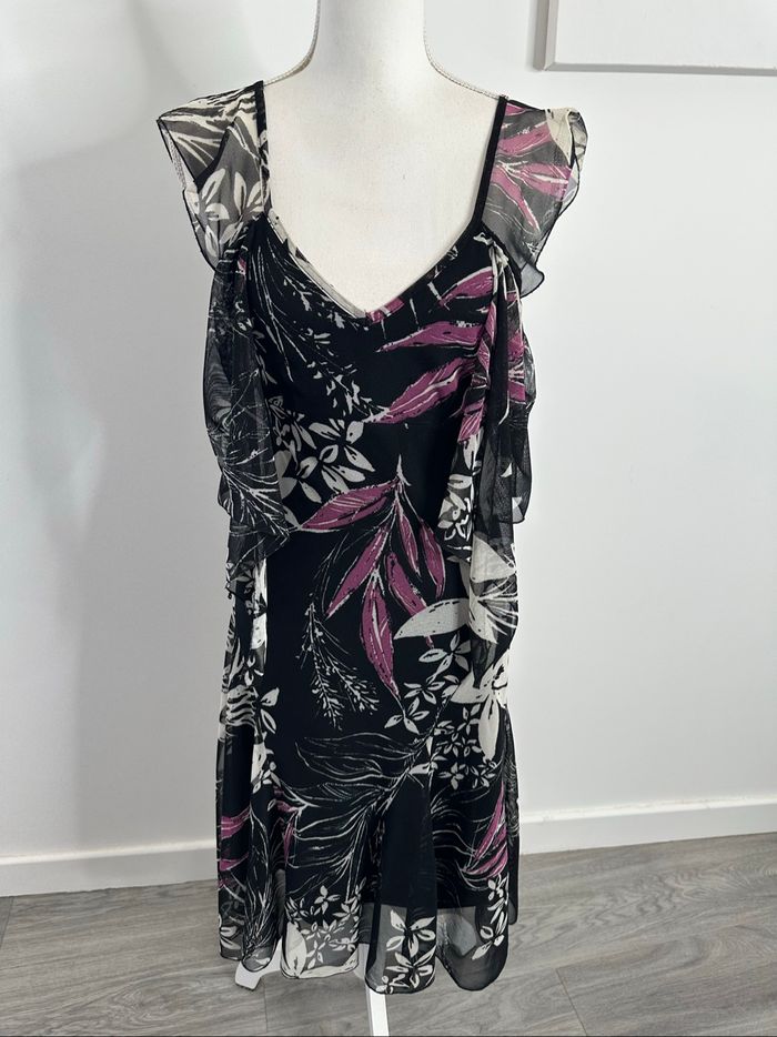 Robe à fleurs en mesh noire blanche et violette Y2K Vintage T38 M - photo numéro 1