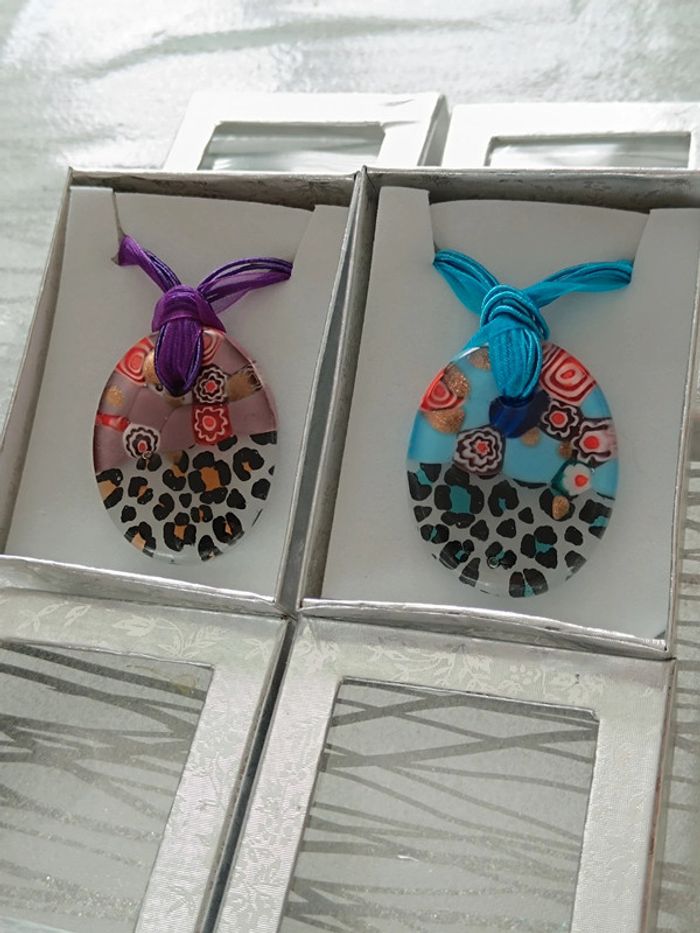 Lot de 4 Colliers Neuf-Pendentif verre soufflé-Motif Léopard 🤎 - photo numéro 3
