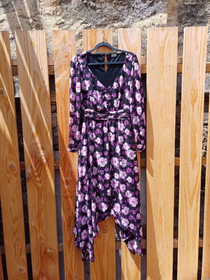 🏷 Marque : Pimkie collection ✂️ Catégorie : Robe, robe longue, robe été, robe chic, robe à volants 📒 Détails : Faux boutons sur le devant mais vrais au bout des manches (un supplémentaire est coususurl'étiquetteintérieure), fronces à la taille, doublure 🧶 Matière : Polyester 🎨 Couleur : Fleurs violettes sur fond noir 🪡 État : En excellent état 📏 Taille : 34 📐 Mesures : Longueur : En moyenne 120 cm Largeur aisselle à aisselle : 43,5 cm 💬 N'hésitez pas à me poser toutes vos questions 📦 Envois rapides et soignés, ok tout transporteur 🎁 Réduction sur les lots