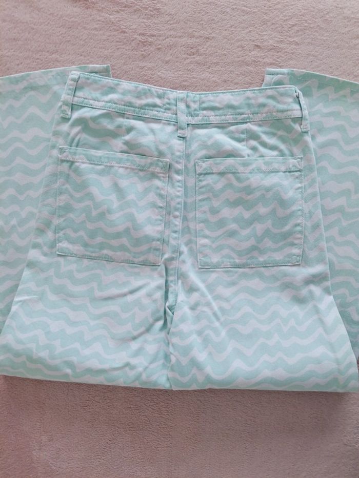 Pantalon Wide Leg coupe large Mango 10 ans blanc et vert motifs vagues - photo numéro 3