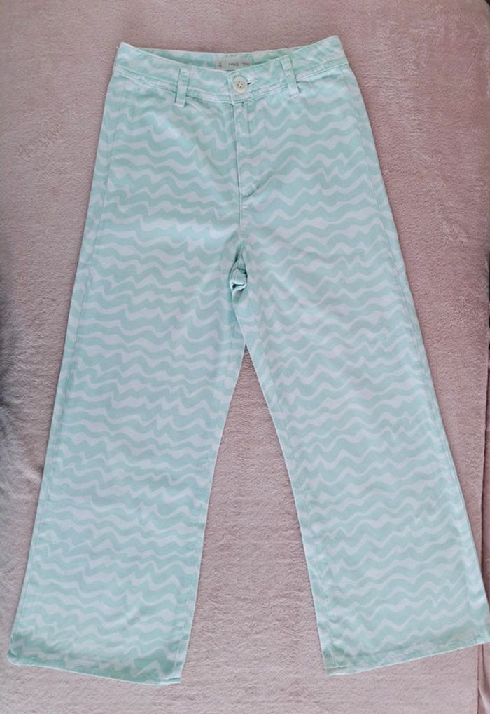 Pantalon Wide Leg coupe large Mango 10 ans blanc et vert motifs vagues - photo numéro 1