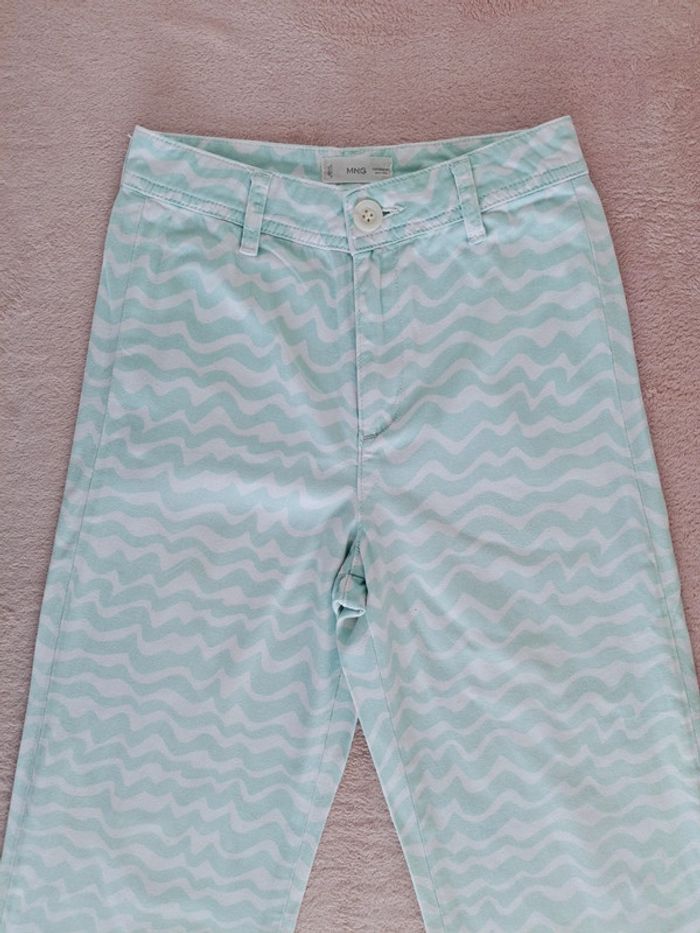 Pantalon Wide leg coupe large Mango XXS 10 ans Blanc et vert clair motif vagues 100% coton Très bon état #adelaide7624vetementsfille10ans
