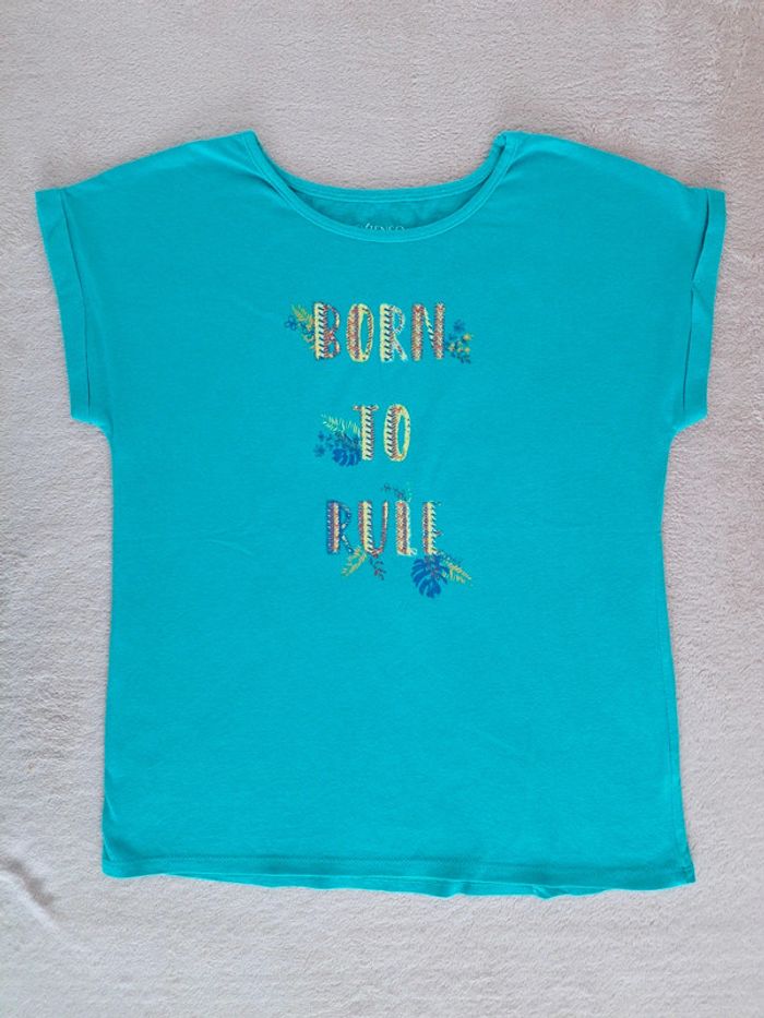 T-shirt manches courtes In Extenso 10 ans Vert turquoise inscription jaune stylisée 100% coton Très bon état #adelaide7624vetementsfille10ans