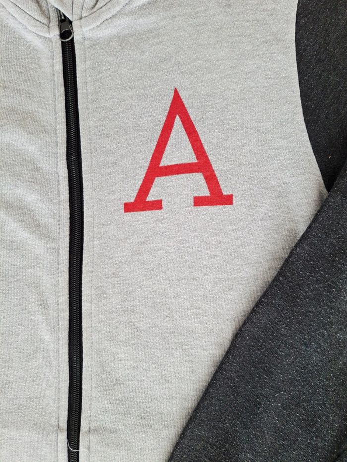 Veste sweat zippée a capuche Go Sport 12 ans Gris clair et gris foncé Lettre A rouge sur le devant de la veste 100% coton Très bon état #adelaide7624vetementsgarcon12ans