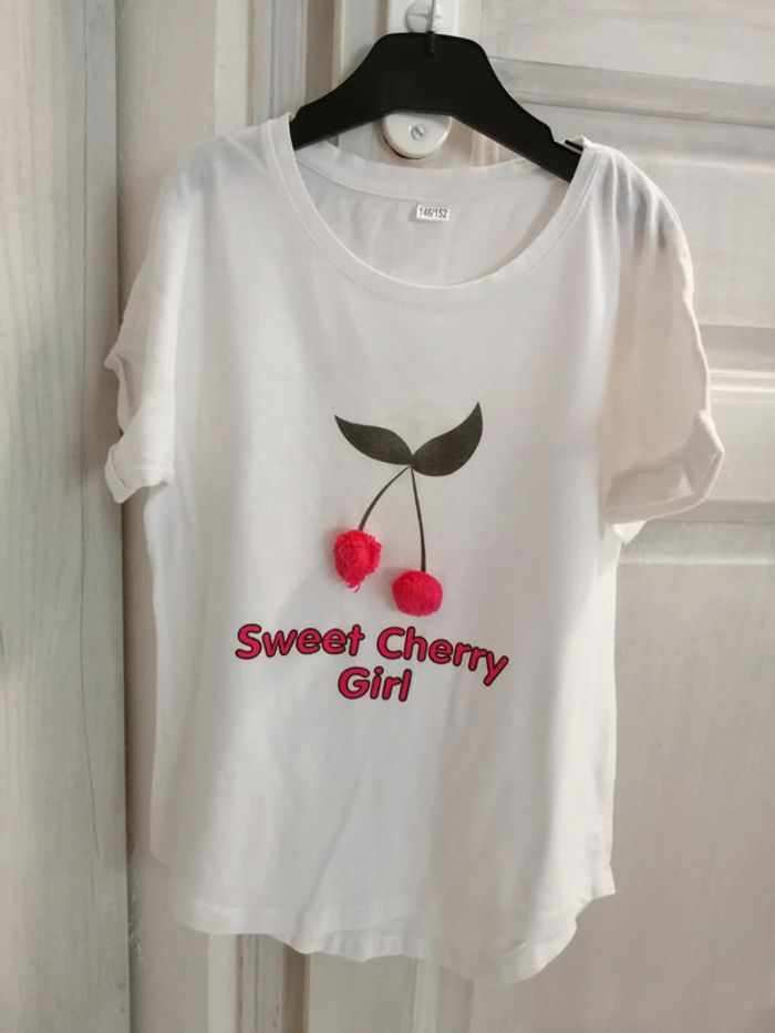 Maillot manches courtes Fille Zeeman Petites tâches au dessus de la feuille et une cerise est un peu abîmée(voir photos) 146/152cm #Daddy11fille12ans