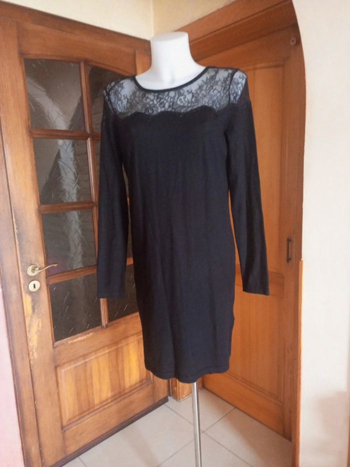 Robe noire avec de la dentelle au niveau du cou manche longue. En excellente état pour plus de renseignements n'hésitez pas 😉