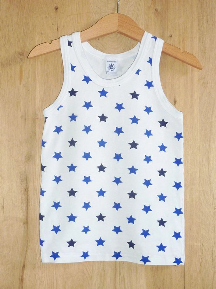 Autres annonces dans cette taille: #karinelillegarcon6ans Débardeur en très bon état, imprimé étoilé bleu sur fond blanc