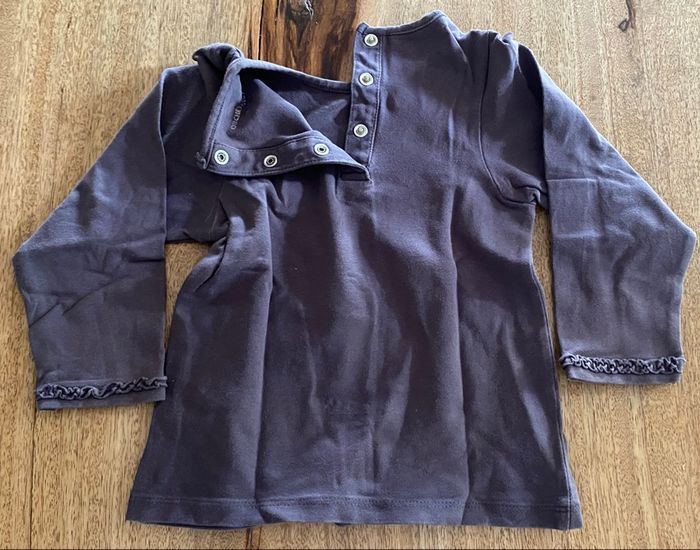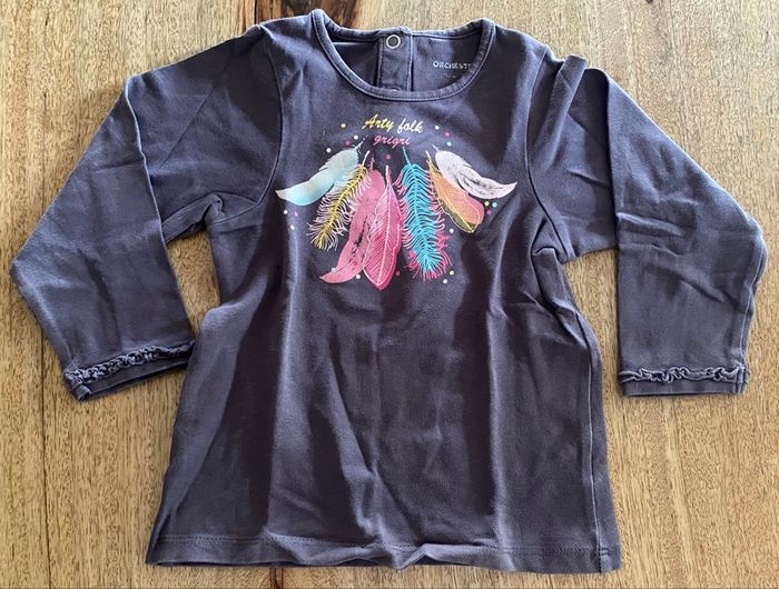 Maillot à manches longues 23 mois Sans taches Logo de plusieurs plumes Petite fantaisie sur les manches 3 Pressions pour ouverture du maillot dans le dos.