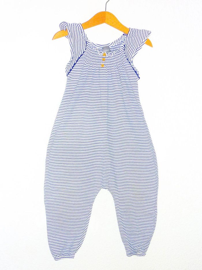 Pour voir mes annonces dans cette taille, tapez: #karinelillefille3ans #karinelillefille2ans Salopette légère de marque NEXT en excellent état, rayures de couleur bleue encre sur fond blanc, manches volantées. On aime son style moderne. La marque taille plutôt grand.