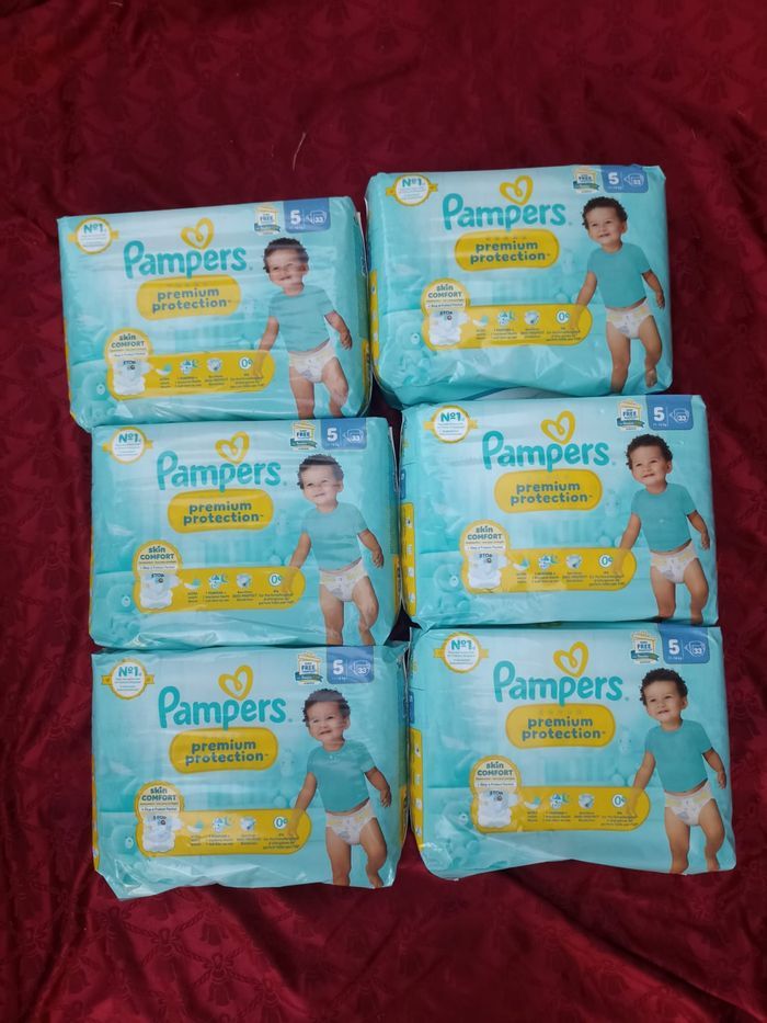 Lot de six paquets couches Pampers jetables premium protection T5 taille 5 jamais ouvert