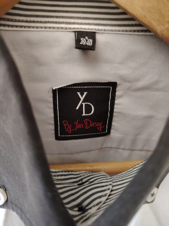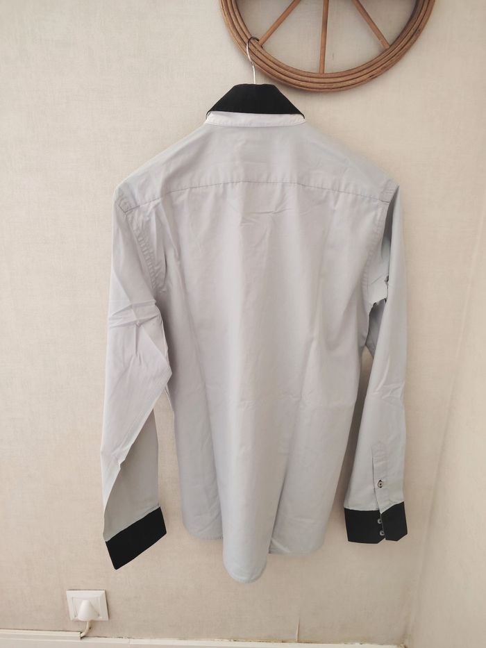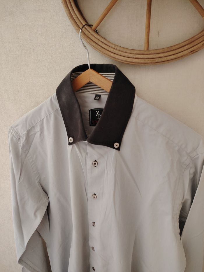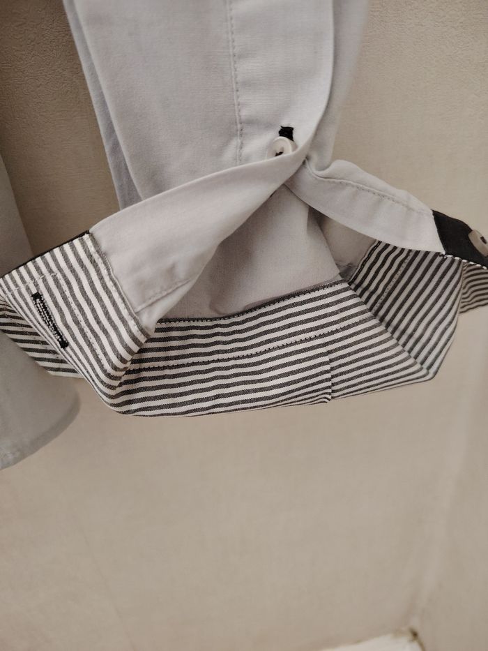 Jolie chemise gris bleu avec intérieur revers marinière. - photo numéro 3
