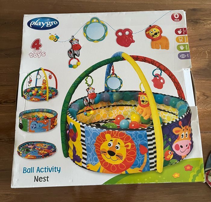 Voici le Parc à balle de Playgro ! Cet ensemble ludique et coloré est idéal pour les tout-petits à partir de la naissance. Il comprend un tapis de jeu avec de nombreuses balles de différentes couleurs, ainsi qu'un arceau avec des jouets suspendus pour stimuler la motricité et l'éveil sensoriel de bébé. Le tapis offre un espace de jeu sécurisé et confortable. Les balles en plastique sont légères et faciles à manipuler, parfaites pour les petites mains. Les jouets suspendus, comme l'ourson et les formes géométriques, permettent d'encourager la découverte et l'exploration. Cet ensemble Grow 'n Play est fabriqué dans des matériaux de qualité, sans BPA, et répond aux normes de sécurité. Il est idéal pour stimuler le développement sensoriel et moteur des tout-petits tout en les amusant. - Tapis de jeu - 32 balles colorées - Arceau avec jouets suspendus - Recommandé à partir de 0 mois - Matériaux sans BPA - Conforme aux normes de sécurité