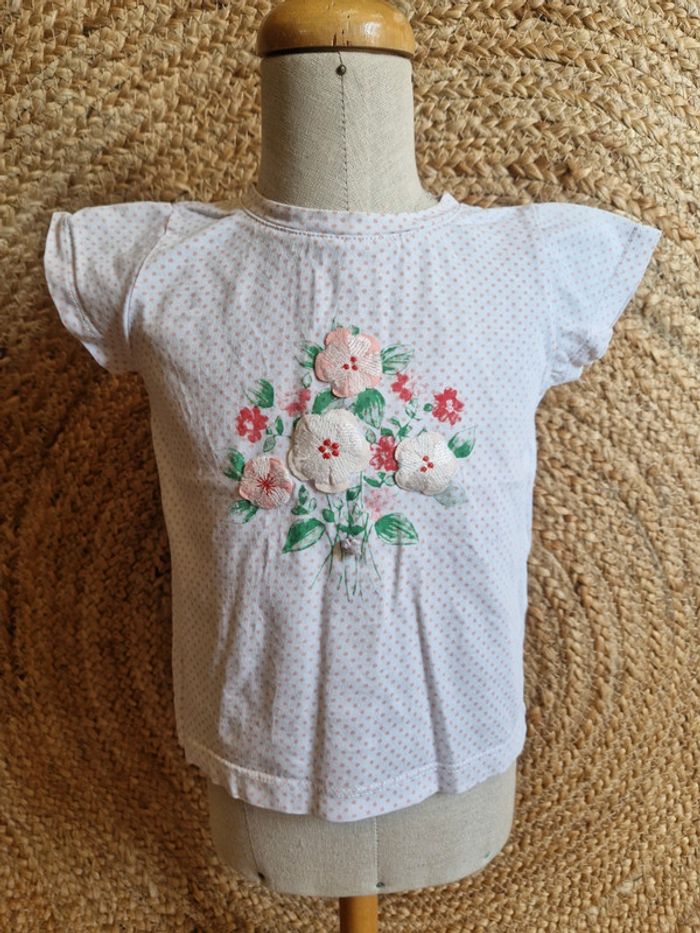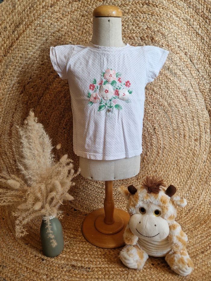 Jolie haut à manche courte blanc fleurie fille sergent major 24 mois 86cm - photo numéro 7