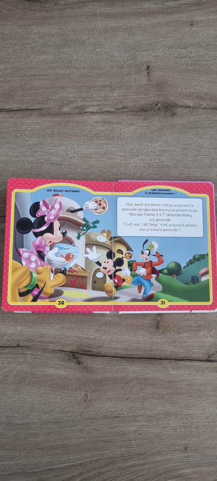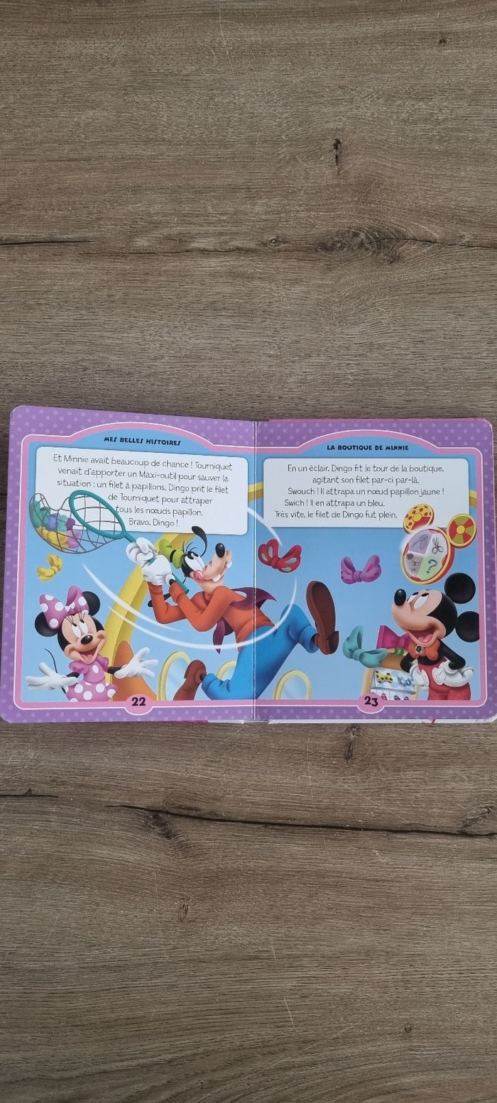 Gros livre à pages cartonnées Mes belles histoires Minnie de Disney Très bon état (juste la dernière page abîmée)