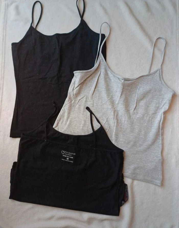 Débardeur gris et noir. Juste un noir porté une fois mais trop petit. Les deux autres sont neufs jamais porté. Taille 38 Primark #taille38 #taille38femme #taille38lexou_77 #debardeur38 #primarkfemme38