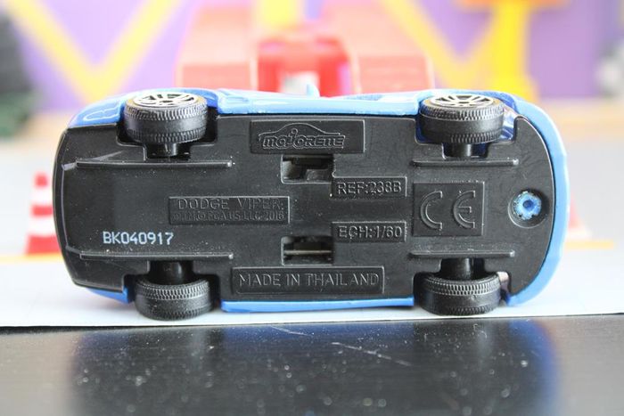 Voiture miniature Dodge Viper Marque : Dodge Modèle : Viper Echelle : 1:60 Couleur : Bleu, vitrage clair Intérieur : Noir Chassis : Plastique noir Fabricant : Majorette Année de production : 2016 à 2018 En très bon état. les portes s'ouvrent Les axes de roues ne sont pas tordus. Vitrage intact. t Réponds avec plaisir aux demandes d'informations complémentaires Réponse rapide envoi soigné dans les meilleurs délais