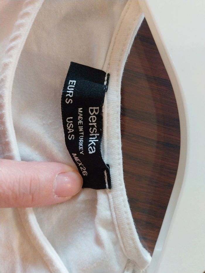 Tee shirt femme Bershka Taille S Blanc manche bouffantes dentelle