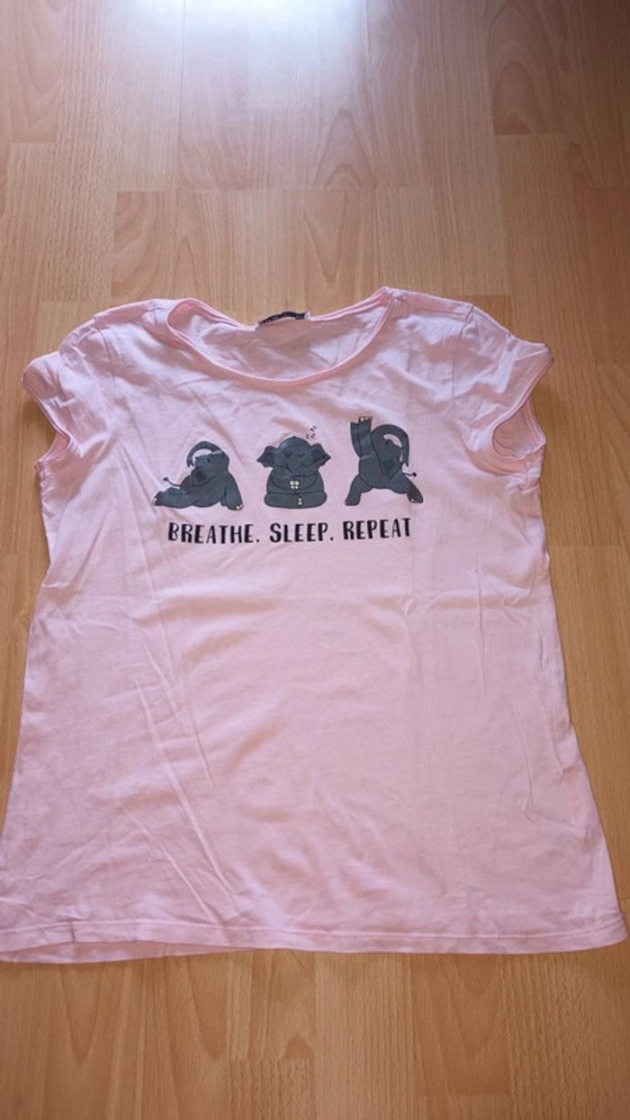 Tee shirt rose pâle Motif éléphants Taille:XS