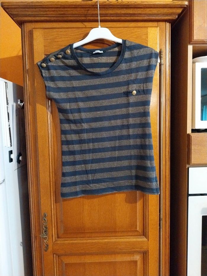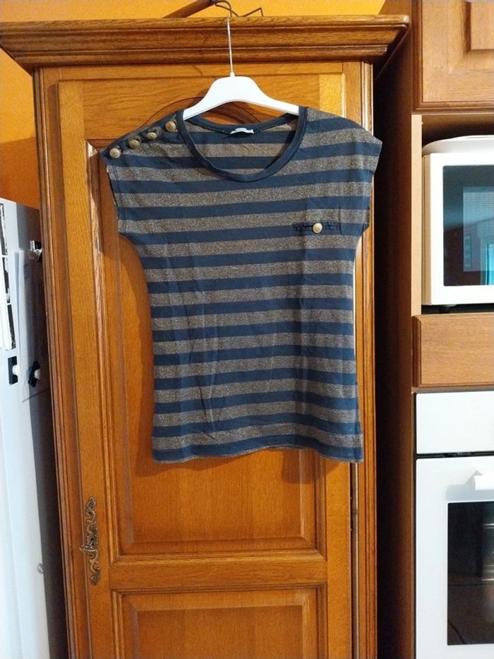 Tee shirt femme Pimkie Taille S Marine et doré style marinière