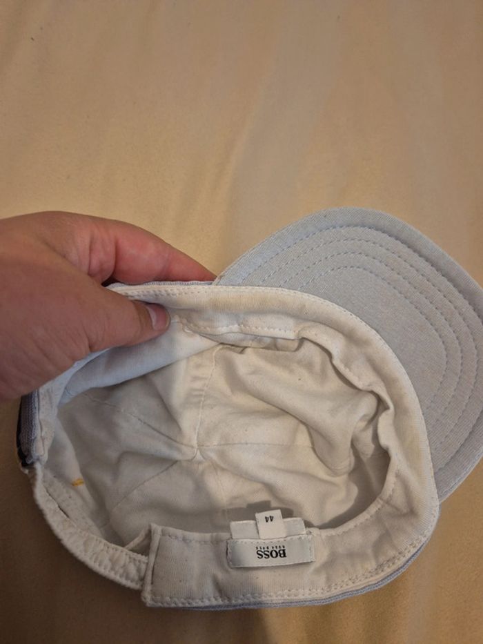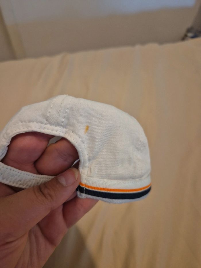 Casquette taille 44cm En bon état ( un peu jauni au niveau du passage de la tête et une petite tâche à l’arrière de la Casquette)