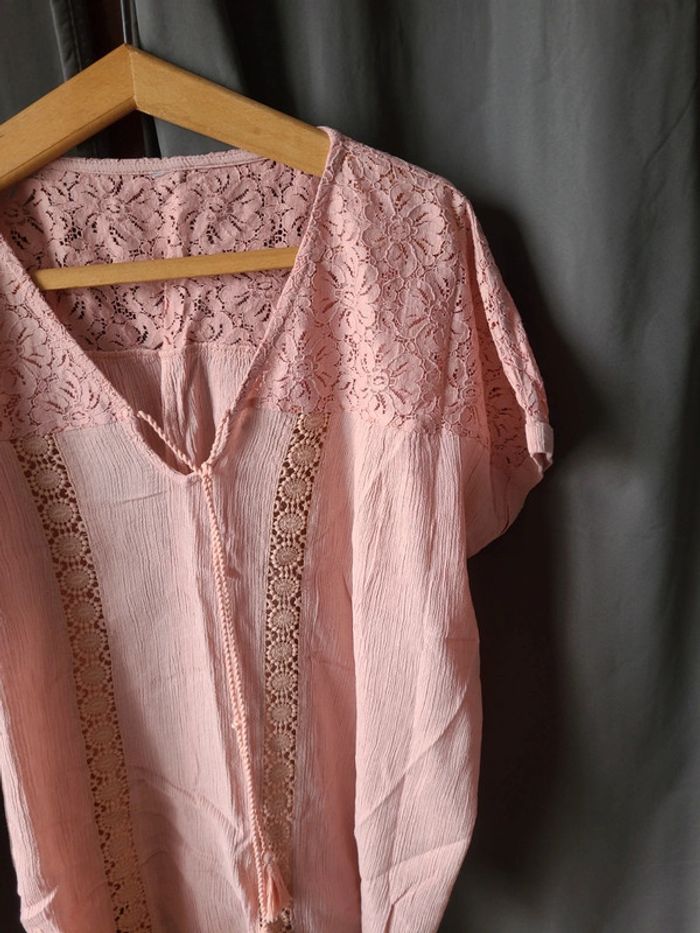 Blouse, tunique haut rose avec dentelle Large T 48