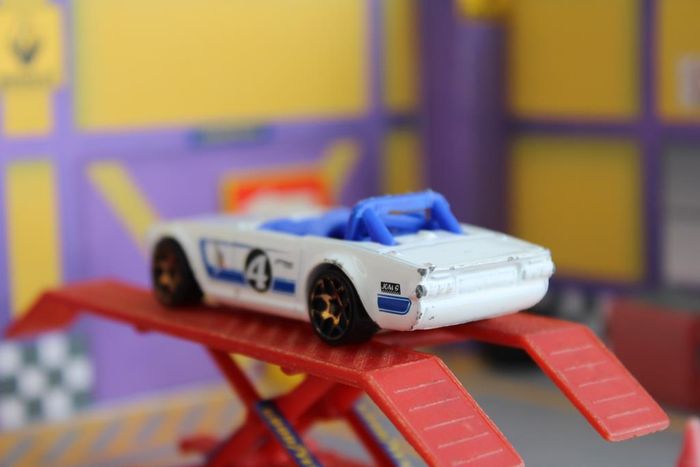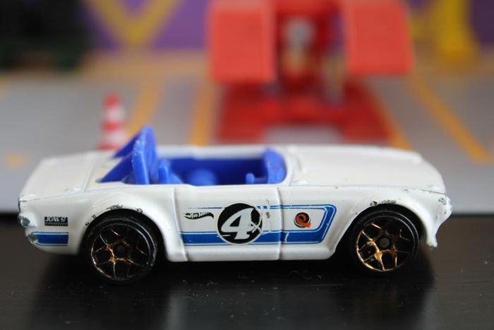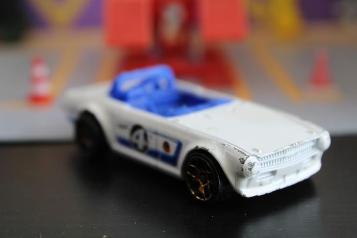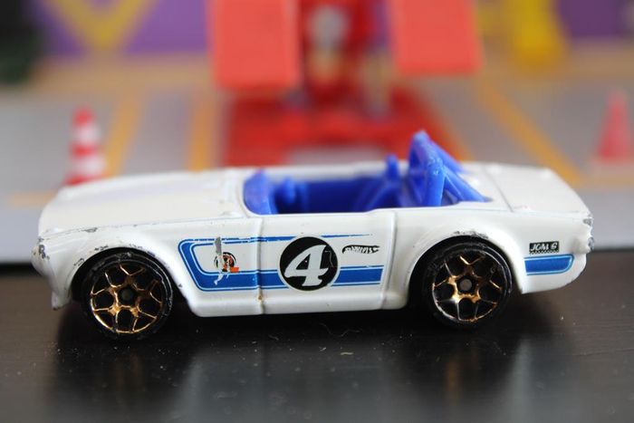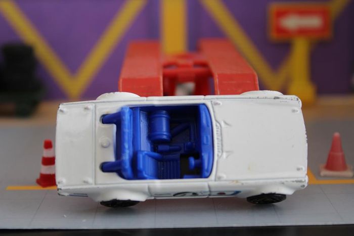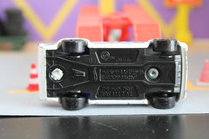 Voiture miniature Triumph TR6 Marque : Triumph Modèle : TR6 Echelle : environ 1:64, 3 inches, 7 cm Couleur : Blanc avec N° de course 4 sur les côtés Intérieur : Bleu Chassis : Plastique noir Fabricant : Hot wheels Année de production : 2019 sur un moule de 2009 Ce moulage représente une TR6 fortement modifiée, transformée en voiture de course décapotable, sans pare-brise, avec arceau de sécurité, siège baquet de course simple et réservoir de carburant monté sur la cabine. Ce moulage est à conduite à droite. En bon état. Les axes de roues ne sont pas tordus. Rares manques de peinture. Réponds avec plaisir aux demandes d'informations complémentaires Réponse rapide envoi soigné dans les meilleurs délais