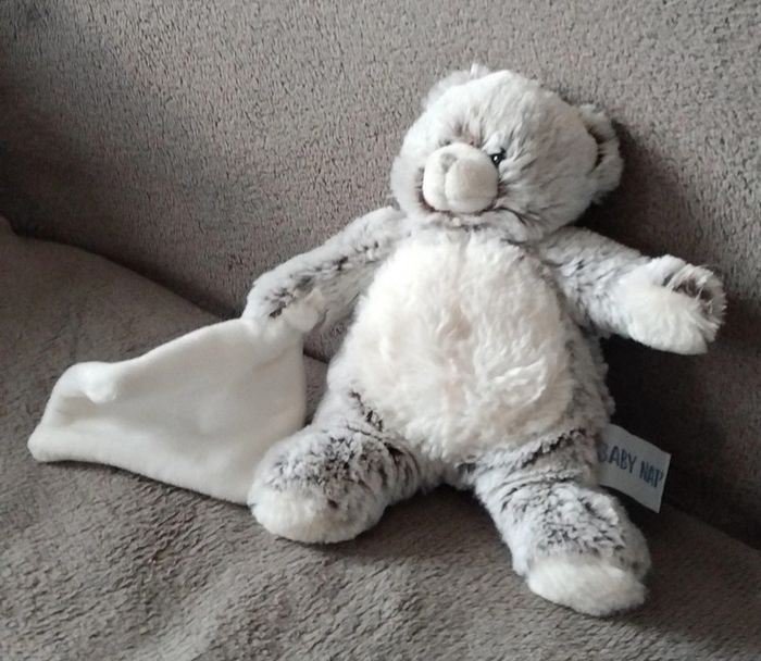 Doudou peluche chat gris et blanc - Mouchoir  - Baby Nat - photo numéro 1