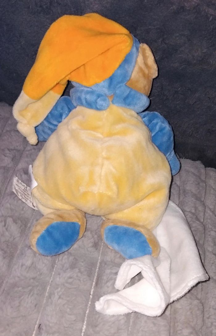 Doudou peluche ours semi plat  bleu,jaune et orange avec mouchoir- papillon- Baby Nat - photo numéro 2