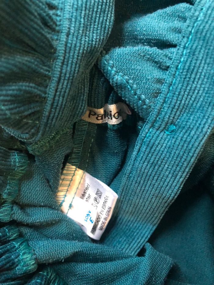 Jupe couleur bleu canard en très bon état Très peu portée Avec bretelles Lola palacios 3 ans