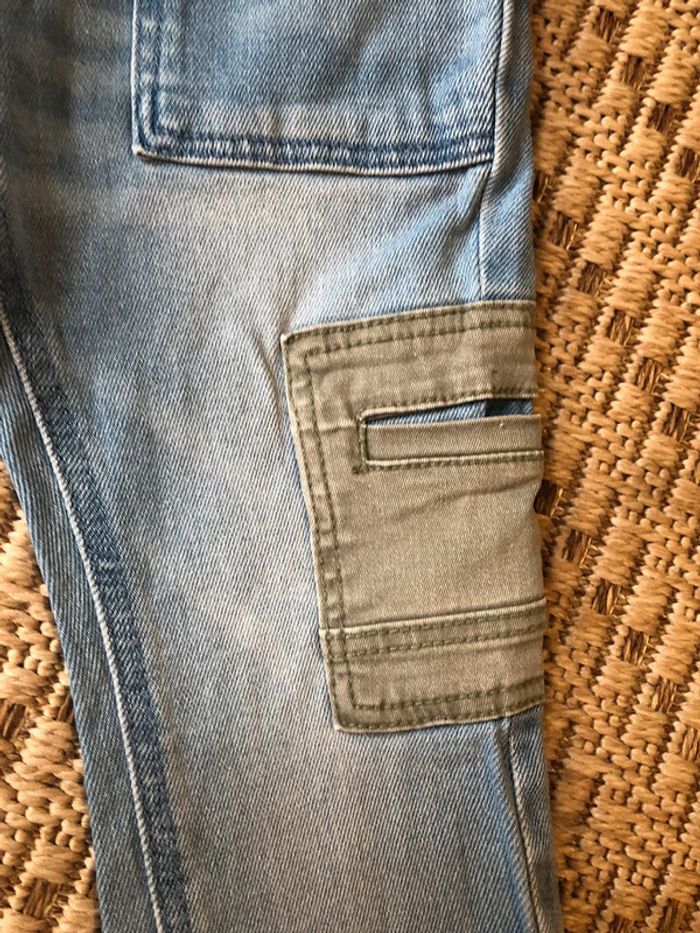 Jean garçon en très bon état Très peu porté Ajustable à la taille Tape à l’œil Taille 4 ans Une toute petite tache voir dernière photo mais se voit à peine