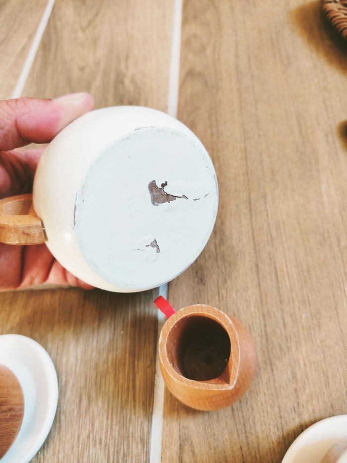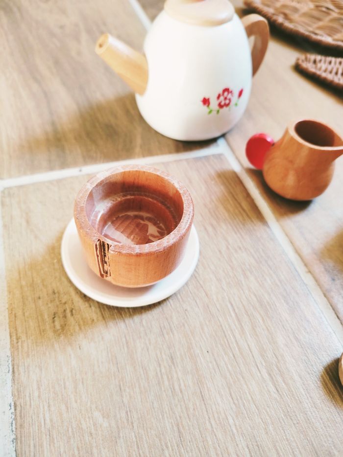 🎀Différentes pieces en bois : théière, tasses,soucoupes...