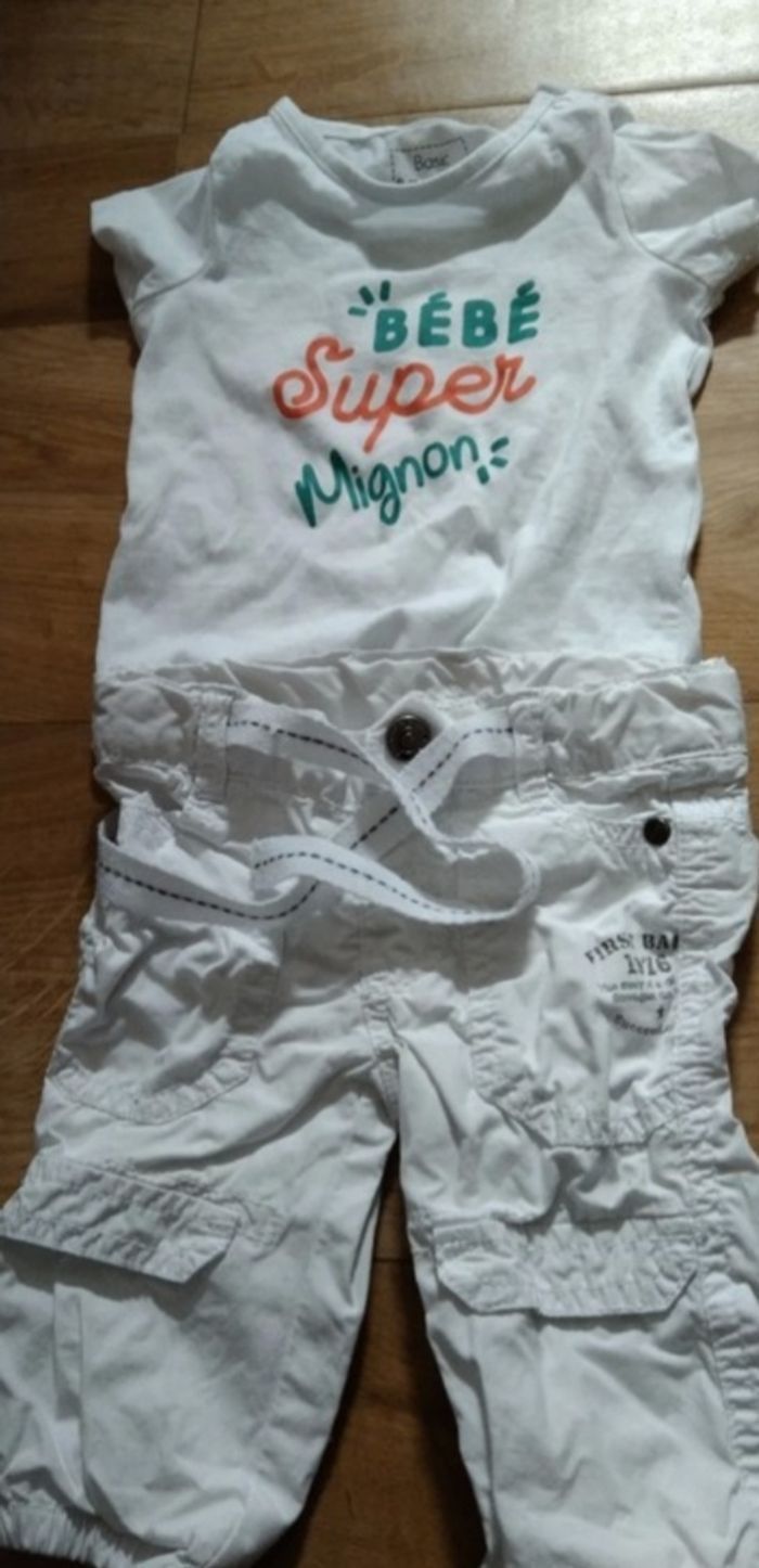 Vends bel ensemble avec son pantalon blanc taille 3mois