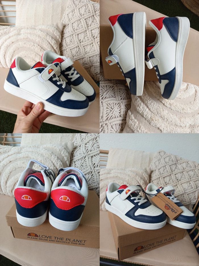 Paire de baskets / sneakers à scratch Ellesse pointure 33 neuves avec étiquettes Coloris blanc, bleu marine & rouge Deux paires identiques de disponibles à 30 € la paire
