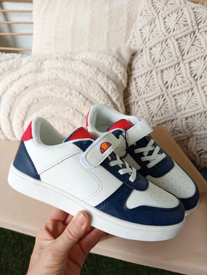 Paire de baskets / sneakers à scratch Ellesse pointure 34 neuves avec étiquettes Coloris blanc, bleu marine & rouge Deux paires identiques de disponibles à 30 € la paire