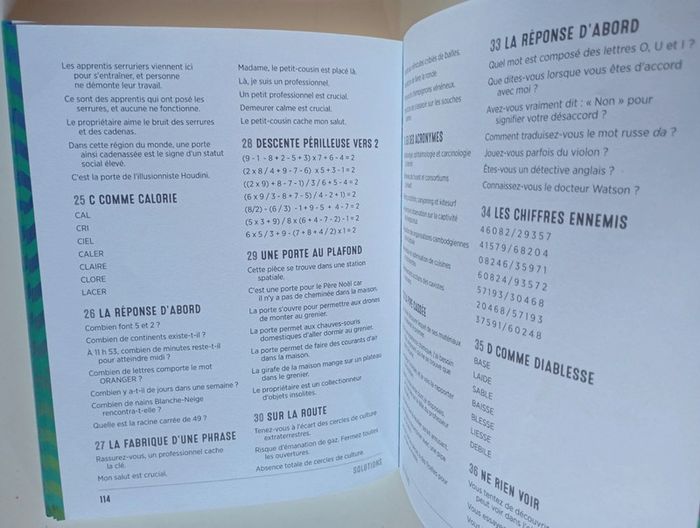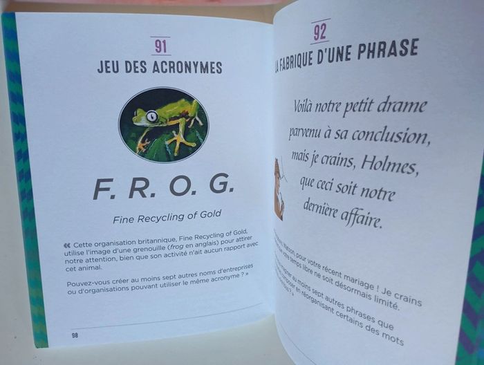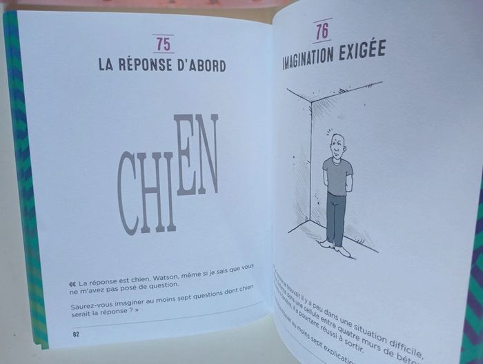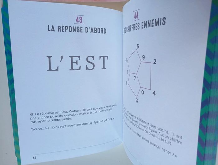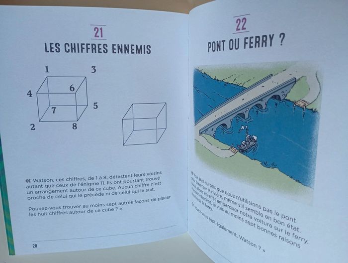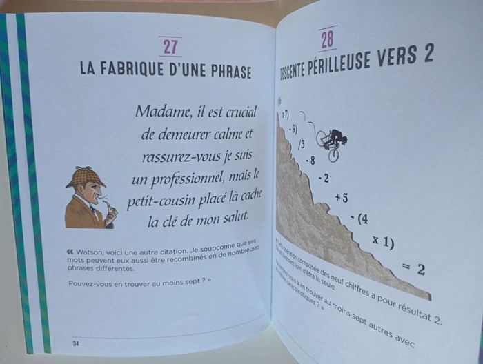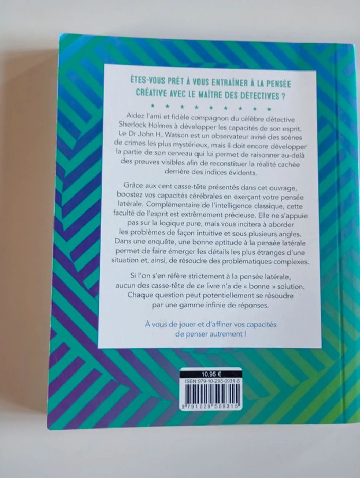 Plus de 100 énigmes inspirées des enquêtes du plus célèbres des détectives. Êtes-vous prêt à vous entraîner à la pensée créative avec le maître des détectives ? Aidez l’ami et fidèle compagnon du célèbre détective Sherlock Holmes à développer les capacités de son esprit. Le Dr John H. Watson est un observateur avisé des scènes de crimes les plus mystérieux, mais il doit encore développer la partie de son cerveau qui lui permet de raisonner au-delà des preuves visibles afin de reconstituer la réalité cachée derrière des indices évidents. Grâce aux cent casse-tête présentés dans cet ouvrage, boostez vos capacités cérébrales en exerçant votre pensée latérale. Complémentaire de l’intelligence classique, cette faculté de l’esprit est extrêmement précieuse. Elle ne s’appuie pas sur la logique pure, mais vous incitera à aborder les problèmes de façon intuitive et sous plusieurs angles. Dans une enquête, une bonne aptitude à la pensée latérale permet de faire émerger les détails les plus étranges d'une situation et, ainsi, de résoudre des problématiques complexes. Si l'on s'en réfère strictement à la pensée latérale, aucun des casse-tête de ce livre n'a de « bonne » solution. Chaque question peut potentiellement se résoudre par une gamme infinie de réponses. En outre, certaines énigmes sont présentées sous forme de réponses, ce qui ouvre un éventail très large de questions. À vous de jouer et d'affiner vos capacités de penser autrement ! Éditeur ‏ : ‎ L'Imprévu 128 pages Dimensions ‏ : ‎ 15.1 x 2.1 x 18.9 cm Livre état neuf #sherlockholmes