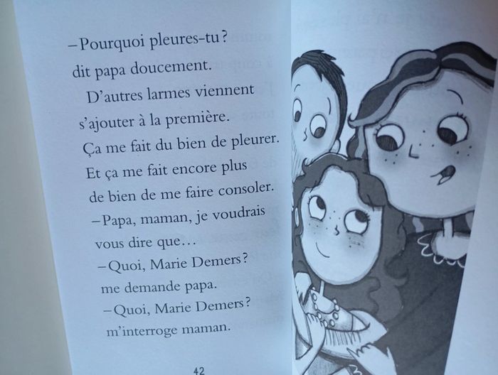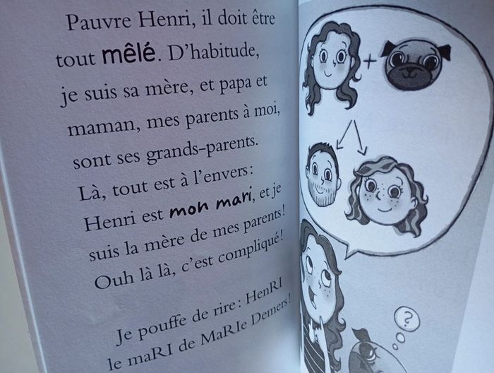 Marie Demers envie parfois son papa et sa maman. Ses parents, comme tous les adultes, font ce qui leur plaît ! Etre parent, ça doit être trop GENIAL. Peut-être qu'on pourrait faire une journée à l'envers, pour changer ? Une journée où Marie Demers deviendrait le parent, et ses parents, les enfants ? Et si Henri, son inséparable chien pug jouait le rôle de son petit mari ? La série Marie Demers aborde avec humour, originalité et sans jugement, des sujets délicats comme le racisme, l'identité sexuelle, les jugements, l'éducation, la compétition, les inégalités, le féminisme... Elle met une scène une jeune fille allumée qui résout les difficultés auxquelles elle fait face en ajustant sa personnalité, pour finalement, grandir. Éditeur ‏ : ‎ Dominique et Compagnie 48 pages Âge de lecture ‏ : ‎ 7 - 9 ans Dimensions ‏ : ‎ 12.9 x 0.3 x 19.8 cm Livre en très bon état